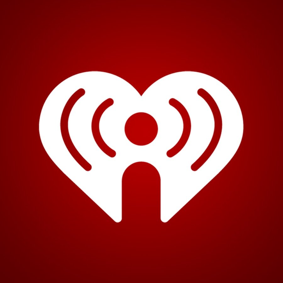 IHeartRadio logo featuring a white heart with wireless signal lines on a red background.